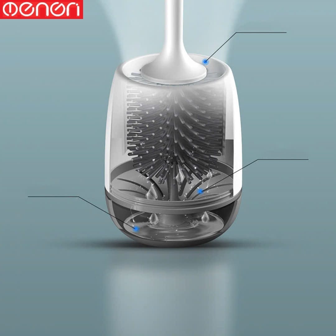 Sự kết hợp giữa bàn chải nhà vệ sinh và giá treo giúp hạn chế tiếp xúc với sàn nhà, giảm nguy cơ lây nhiễm vi khuẩn.