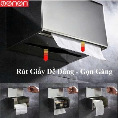 – Hộp đựng giấy chất liệu: Inox SUS304 cao cấp → chống gỉ tuyệt đối, dùng lâu không xuống màu